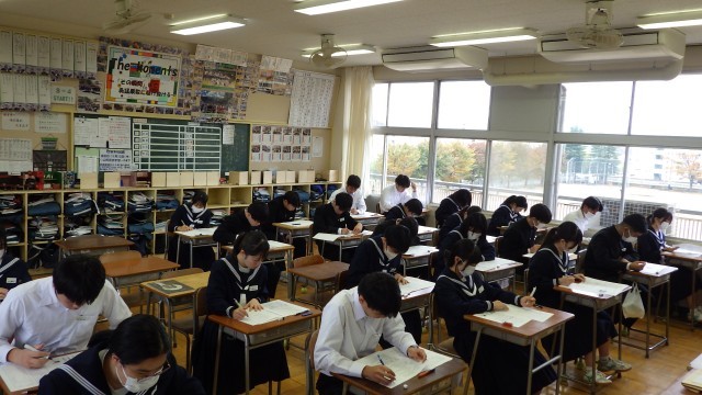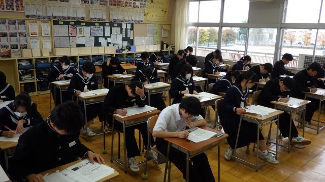 3年生は、一足早く期末テストを受けています。中学校卒業を4か月後に控え、自己の学びを振り返るよい機会として取り組んでほしいと思います。