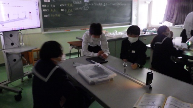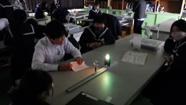 凸レンズを通して物を見る際、物とレンズの距離を少しずつ変えていくとある地点を境にして物がさかさまに見えます。あれ?という生徒の驚きが新鮮でした。まさに知的好奇心を掻き立てられる実験ですね。