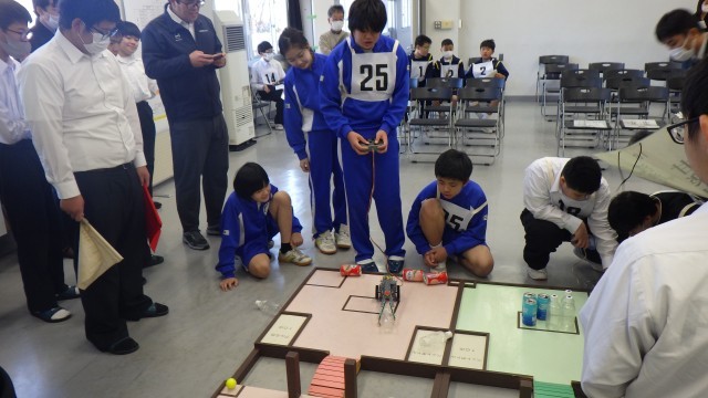 藤岡ロボチャレンジ2025が藤岡工業高校で行われました。本校からは科学部の2チームが参加し、時間をかけて作り上げたロボットで勝負に挑みました。