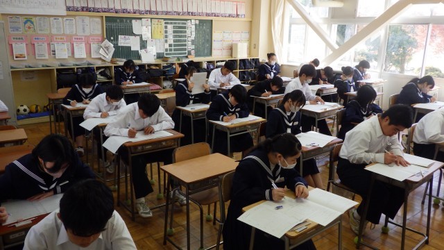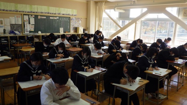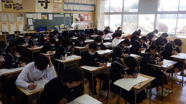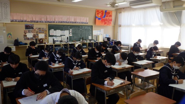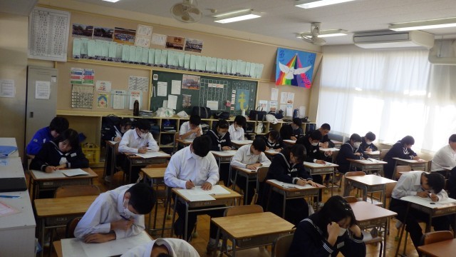 期末テストの最終日となりました。各クラス、は静寂に包まれ、生徒は皆真剣に試験に臨んでいます。