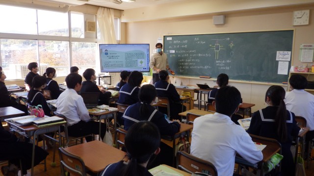 水圧というものについてまとめていました。水中に物体を入れるとあらゆる方向から圧力がかかります。それは、水深が深くなればなるほど大きくなるそうです。そういったことについて、生徒は生活経験と結びつけながら考えていました。