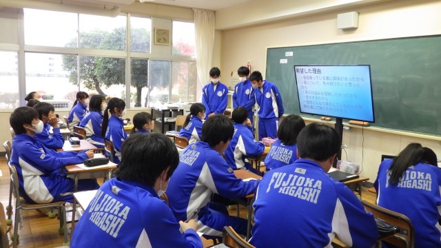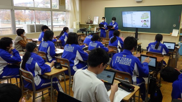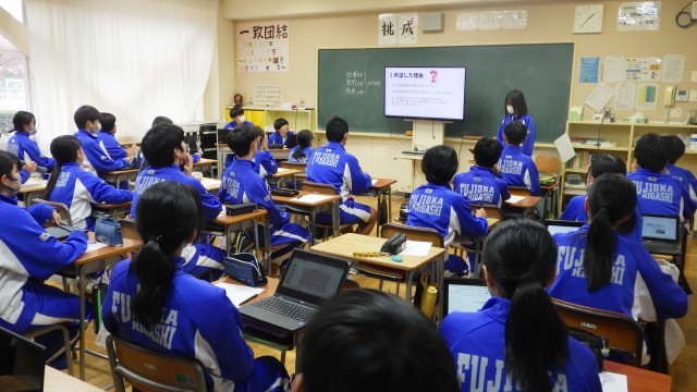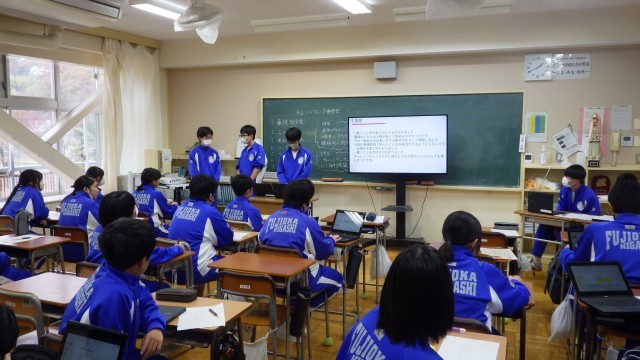2年生が10月に実施したチャレンジウィークの報告会を行いました。各ゼミごとに7会場に分かれ、事業所ごとに発表しました。その事業所を希望した理由や体験内容、そこで働く人たちのすごさ仕事の大変さ、楽しさなど、感じたことをわかりやすくまとめて報告してくれました。1年生は、この報告を聞いて進路学習の一環にするとともに、来年度への展望を持つことができます。ご協力いただいた事業の皆様に心より感謝申し上げます。