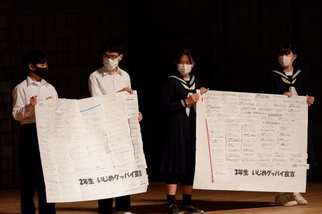 開会宣言では、「いじめ撲滅に向けた道徳の授業」「赤い羽根募金」「あいさつ運動」「人権教室」など、これまでの取組を振り返りました。