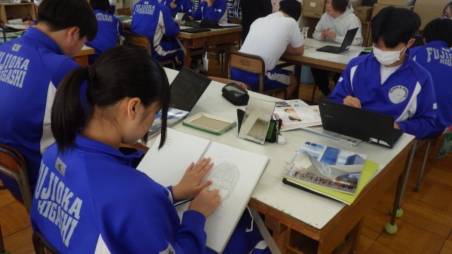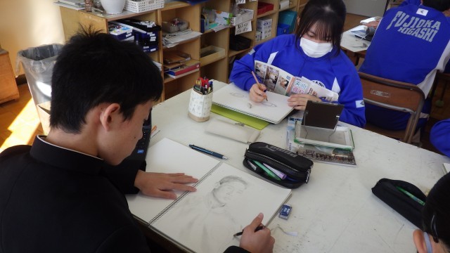 自画像の制作に取り組んでいました。皆一言もしゃべることなく真剣にスケッチに取り組んでいました。