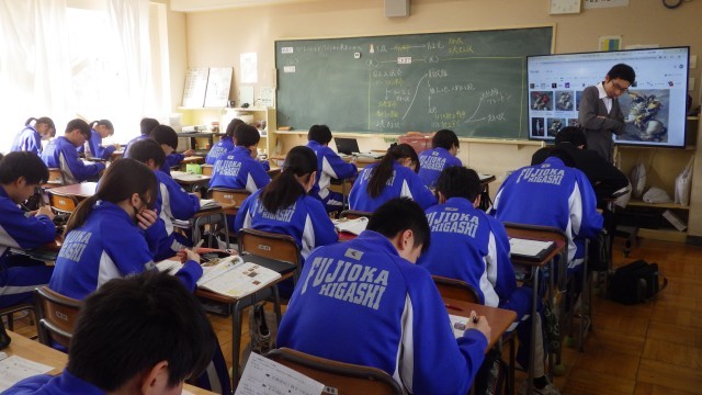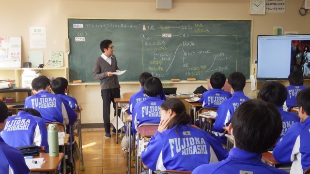 いわゆるフランス革命の学習を進めていました。王政のもと、今では考えられないような身分制度や差別があったことから、自由・平等などの基本的人権を尊重する正しい社会を創ろうとする動きが活発になっていく、そういった社会の動きを生徒は真剣な表情で聞き、ワークシートに記入していました。興味深く学習に取り組んでいる様子がよくわかりました。