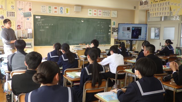 太陽系にある天体はいくつ?水星、金星、地球、火星、、とかぞえていくと8個ありそうですが、実は惑星を取り巻く衛星もあるためもっとたくさんあるそうです。生徒は、宇宙の広がりを感じながら話を聞いていました。