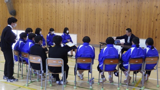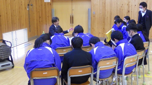 1月29日(木)3・4校時に、進路学習の一環として社会人の話を聴く会を開催しました。藤岡青年会議所から6名の講師の皆様においでいただき、それぞれの事業所の仕事内容や理念、やりがいなどについて詳しくお話しいただきました。6ブースに分かれて少人数で話を聴かせていただいたので、生徒はとても真剣に、興味を持って話を聴いたり質問したりすることができました。講師の皆様、お忙しい中ご協力いただきありがとうございました。