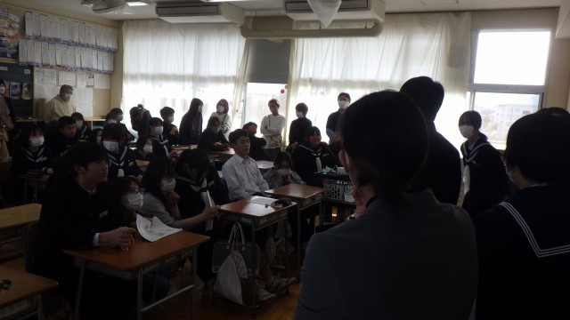 また、2年生は進路学習を行い、いよいよ1年後に迫った受験に向けて学習し、1年生は、1年間を振り返りながら自分たちの成長やクラスへの感謝を伝え合っていました。