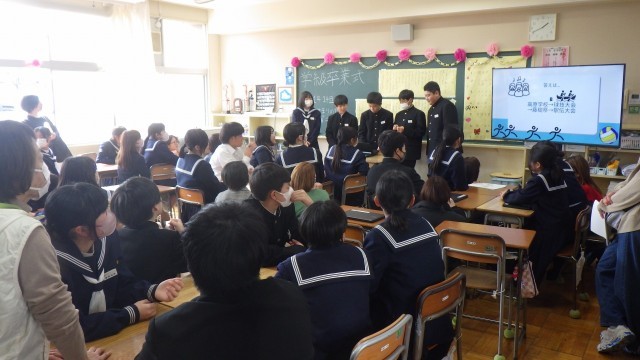 各学年、年度末にふさわしい内容の授業となっていました。特に、3年生の学級卒業式では、生徒が主体となって作り上げた式となっており、感動あり、涙ありの素敵な会となっていました。