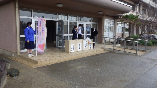 今日は小雨がぱらつく朝です。そんな中でもあいさつ運動は毎朝行われています。また、JRCユネスコ委員会による資源回収が最終日となりました。皆さんのご協力ありがとうございました。