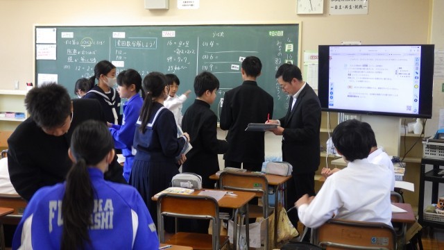 1年生の数学は素因数分解の学習でした。中学校の授業が各教科でスタートしています。授業のシステムについて、担当の先生受けた説明を踏まえ、各自主体的に学習を進めています。