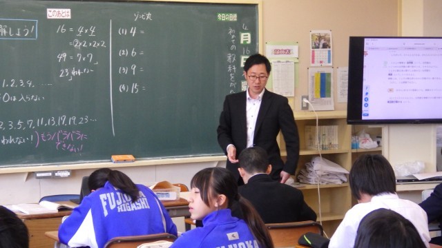 4月16日(木) 1年3組(数学「素因数分解」)
