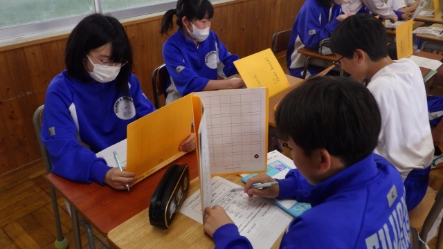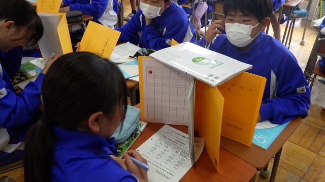 1年生の英語はbe動詞の学習でした。今日はAre you~?の聞き方とその答え方について、Battleship Gameをしながら繰り返し音読して練習しました。