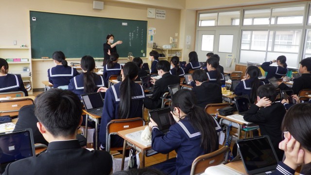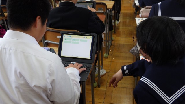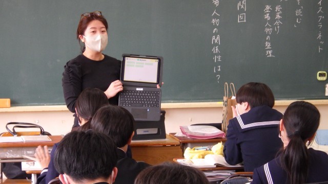 2年生の国語は、物語文の学習でした。今日は、相関図を使って登場人物の関係性を整理しました。各自端末を活用して活動を進めていました。