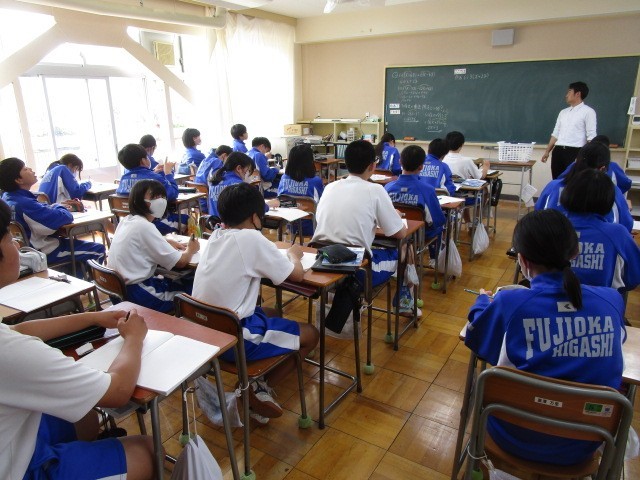 XやYなどの文字を含んだ項同士のかけ算や割り算の仕方について学習していました。前の時間に学習したことを踏まえて、今日の課題はどこが違うのか?ということからはじめ、学ぶ意義を確認しながら進めています。