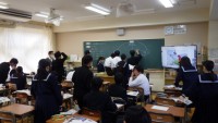 ピリッとした空気の中、少年の主張の発表が行われていました。聴いている生徒は、発表者の主張を一人一人評価しています。