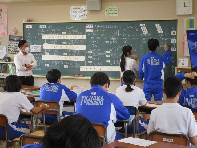 3年2組(数学)「展開や因数分解を生かそう」 公開日 2025/05/27 更新日 2025/05/27 3年生に関すること 因数分解などについて、単に解き方を学んで問題に取り組むだけでなく、どのような有用性があるのかについて考える学習です。どこかで生かせるといいですね。