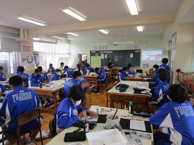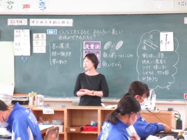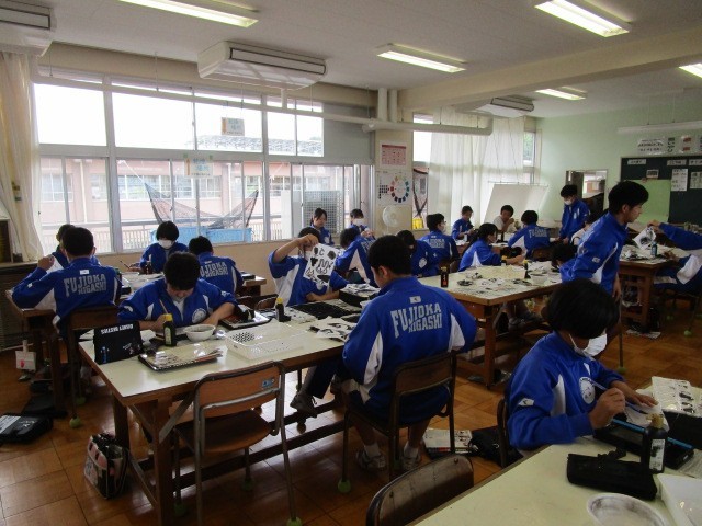 墨の濃淡や線の強弱、筆の動きなどを工夫して、味のある作品を創り上げています。仕上がりが楽しみですね。