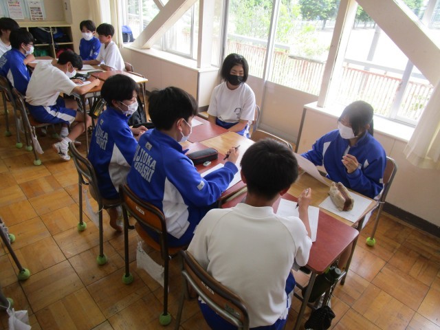 様々な学年の生徒たちでグループを組み、交流を通して自分のよさを再発見する「リフレーミング」を行いました。これは自分の短所も、他の人から見れば強力な長所になることに気づくことができる活動です。
