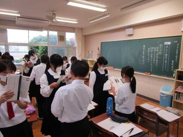 新しい教材文を読み合っていました。本時のめあては「本文の構成を捉えよう」ということですが、単元の目標も同時に立てているところが素晴らしいですね。