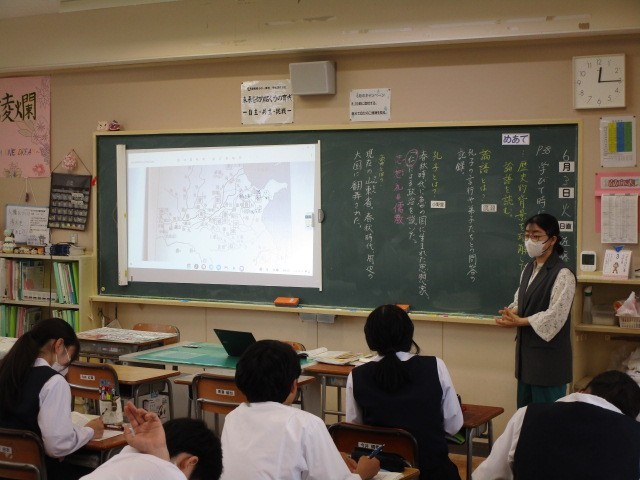 3年2組(国語)「学びて時に之を習ふ」 公開日 2025/06/03 更新日 2025/06/03 3年生に関すること 歴史的背景を理解した上で「論語」を読むというめあてで学習を進めていました。孔子の教えは今も生きていますね。