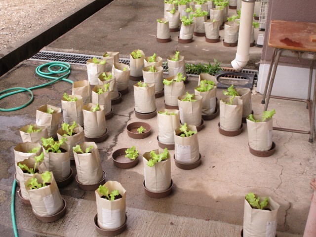 一人一鉢、リーフレタスを栽培しています。作物を栽培する際のポイントについて改めて確認し、適切な管理ができるように努めましょう。