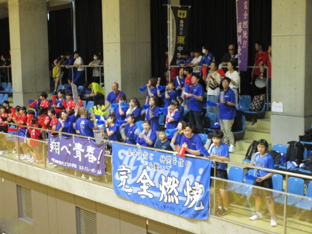 庚申山の市民体育館において、西中戦、北中戦が行われました。西中戦では、1点を争う好ゲームとなりましたが、終始安定したプレーで勝利しました。北中戦では、1セット目をデュースの末落とし、2セット目も30点を超えるデュースになる接戦でしたが、わずかに及ばず敗戦となりました。準優勝チームとして県大会に出場しますので、更にチームワークを高め県大会での更なる活躍を期待します。