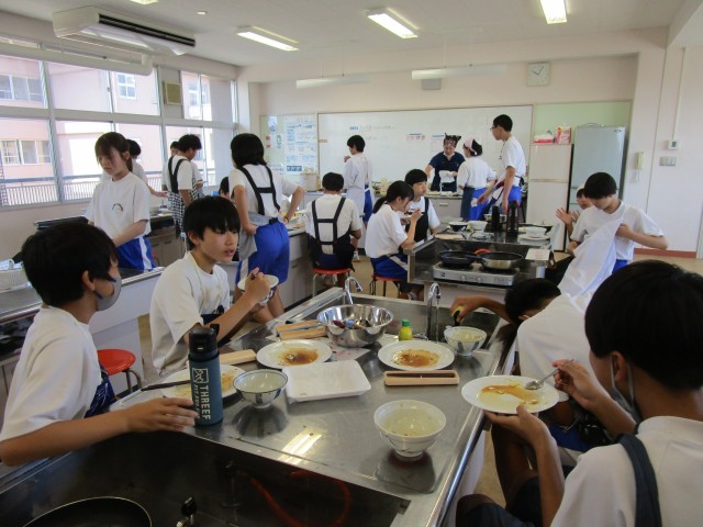 豚肉の生姜焼きの調理実習をしていたようです。すでに試食の段階で、皆美味しそうにたくさん食べていました。上手に作れたようです。