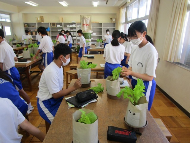 2年2組(技術)「リーフレタスの栽培」
