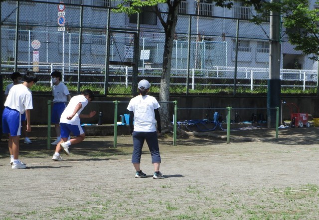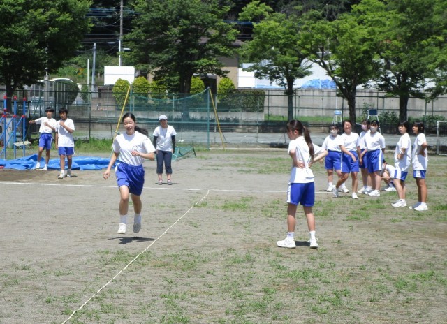 暑い中ですが、校庭で活動していました。走り幅跳びで、より遠くへ跳ぶための助走の仕方を研究していました。暑い中なので、木陰で休憩を取りながらの活動です。