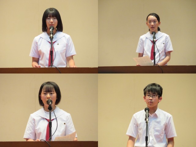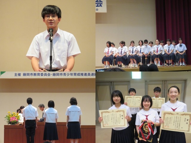28日(土)市民ホールにて同大会が開催されました。本校からは5名の生徒が出場し堂々とした主張を発表しました。自分や仲間、家族や地域の方、様々な人々との関わりの中から自分なりに感じたこと考えたことをテーマに、鋭い切り口で素晴らしかったです。文章の校正や発表の練習などとても大変だったことと思います。おつかれさまでした。最優秀1名、優秀4名という結果で、西部地区大会に1名が出場します。引き続き頑張ってください。