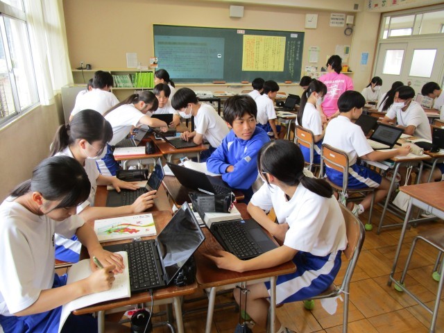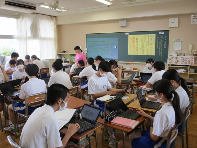 俳句を鑑賞し、お気に入りの俳句が同じだった生徒同士で意見交換をしていました。その俳句をどのように読んだのか、それはなぜかなど、積極的な意見交流が見られました。