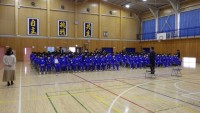 3年生の後は、1・2年生の式歌「旅立ちの日に」の練習です。しっかりと声を出して...
