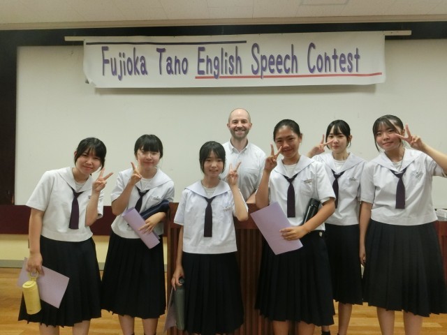 北中の代表6名の生徒が、学習センターで行われた藤岡・多野英語弁論大会に参加しました。校長室で早めの給食を食べているときから緊張でドキドキの生徒達でしたが、観衆を前に、堂々と自分の考えを英語で表現することができました。時間をかけて練習し、立派に発表のステージを務めた6人。よくがんばりました!
