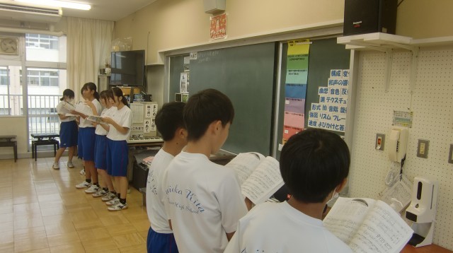 9/12 2年生音楽の授業 公開日 2025/09/12 更新日 2025/09/12 できごと 北斗祭に向けて、合唱の練習をしていました。前半はパートごとに練習を行い、後半は教室に集まり合わせていました。クラスごとの達成度が、黒板に貼ってあるため、それを目安に意欲的に取り組んでいます。生徒たちは教室内で合わせるときにも、各パートで相談して、形態や歌い方を工夫しながら取り組んでいました。