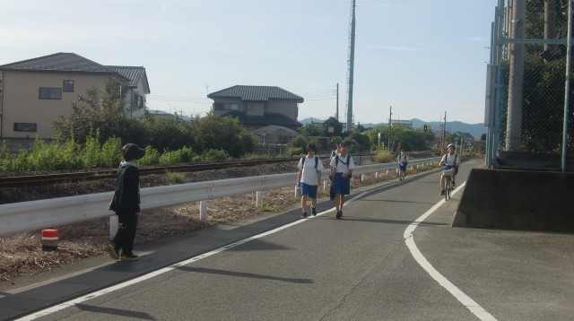 本日、校門前で、更生保護女性会の方が一人一人の生徒に丁寧にご挨拶くださりました。生徒も笑顔で挨拶を交わし、一日のスタートにふさわしい、温かい雰囲気に包まれていました。定期的に声かけをしていただきありがとうございます。