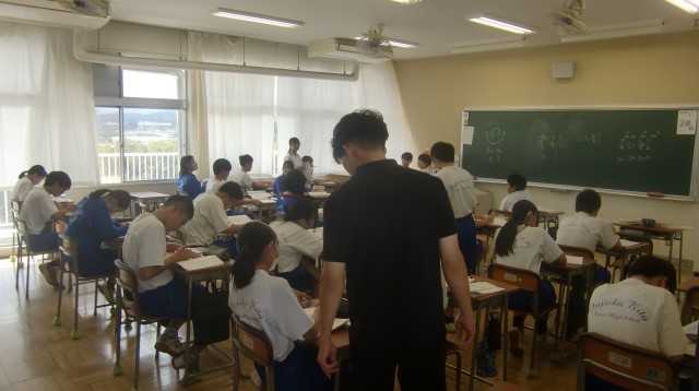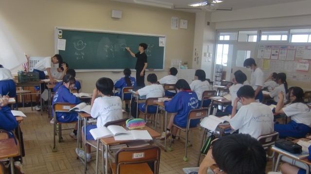 9/24 1年生数学の授業 公開日 2025/09/24 更新日 2025/09/24 できごと 中間テストに向けて、今までの学習の復習をしていました。それぞれの理解度に合わせて、問題を解いたり、友達や先生に教えてもらったりしながら取り組んでいました。