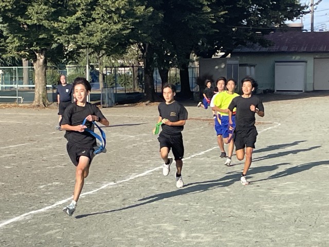 10月4日(土)に行われる市駅伝大会が近づいてきました。今朝は襷リレーの練習も取り入れて、本番に向け技術も気持ちも高めています。秋らしくなった朝の空気の中、チーム全体としての力が充実していることを感じる、いい時間でした。
