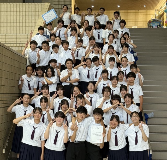 9月20日に行われた「TBSこども音楽コンクール」前橋地区大会で、吹奏楽部が最優秀賞に輝いたという連絡が今日来ました。体育館で行われた全校集会で伝えると、部員たちからは喜びの歓声が上がりました。涙を流したり友達と抱き合ったりして感激している様子に、全校生徒から祝福の大きな拍手が贈られました。11月24日の東日本大会でも、北中らしい演奏を思いっきり響かせてください!おめでとう!