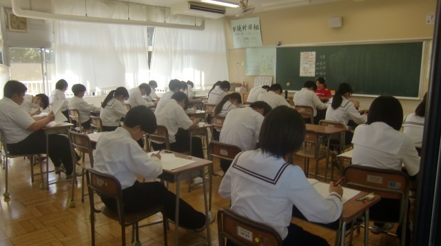 10/8 実力テスト(3年生) 公開日 2025/10/08 更新日 2025/10/08 できごと 緊張感に包まれた教室で、真剣にテストに臨んでいました。希望の進路を実現するために、目の前のことを1つ1つにしっかりと向き合っています。