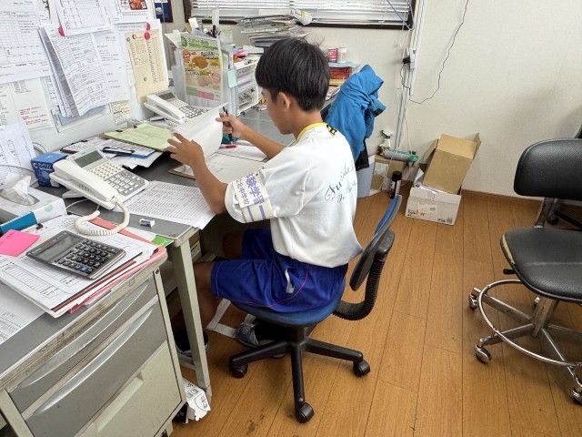 お魚の在庫を運んでいます。事務作業も体験させていただきました。