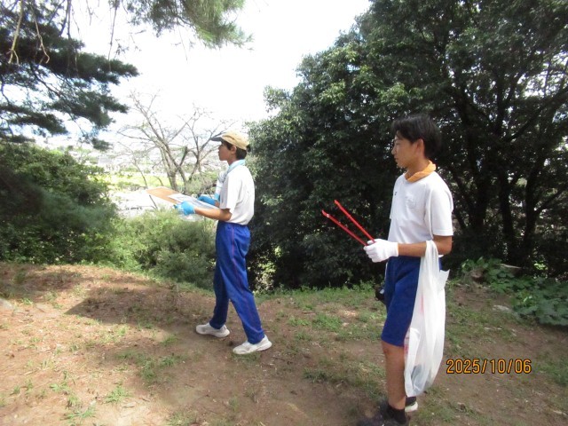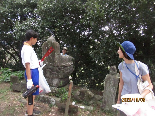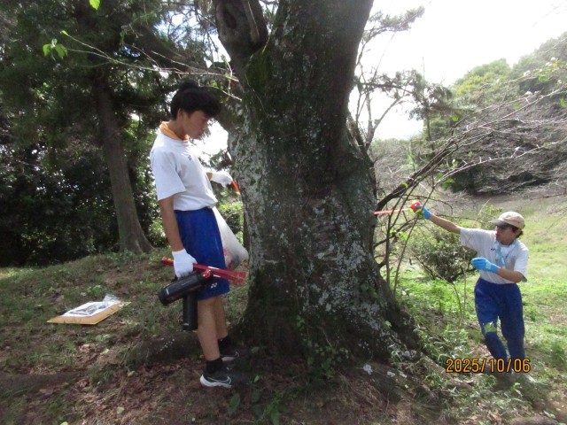 この日は七越山古墳において、虫害にあっている木々を調べ、チェックする作業をしていました。