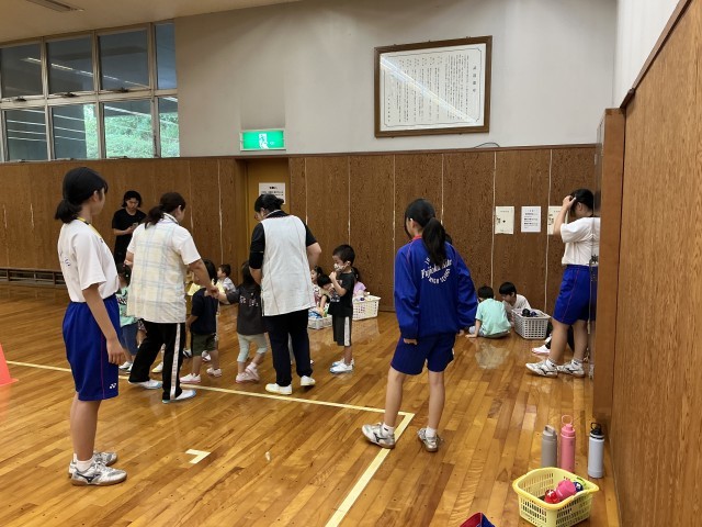 屋内での活動のお手伝いをしている様子です。