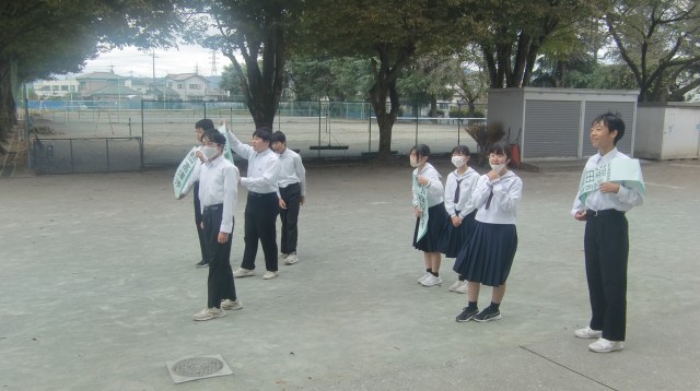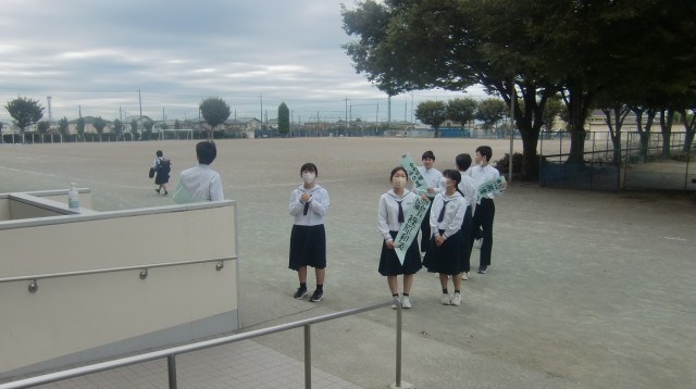 10/21 選挙活動 公開日 2025/10/21 更新日 2025/10/21 できごと 今朝も、生徒玄関で、立候補者が大きな声であいさつや演説をしていました。明日の5・6校時が役員選挙になるため、力も入ります。