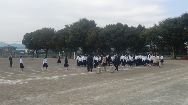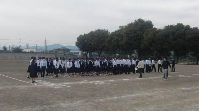 体育館が改修工事の予定で使用できないため、校庭では2年生が北斗祭向けてステージへの出入りの練習をしていました。今朝は少し寒かったですが、先生の指示に従って素早く行動し、短時間で確認をすることができました。さすが2年生です。