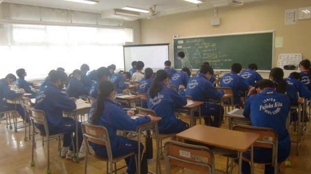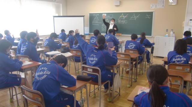 3・4組とも同じ内容で「三角形と比の定理の逆向きは成り立つのだろうか」をめあてとして学習していました。これまで習った学習を振り返り、ここでの課題に真剣に取り組んでいました。