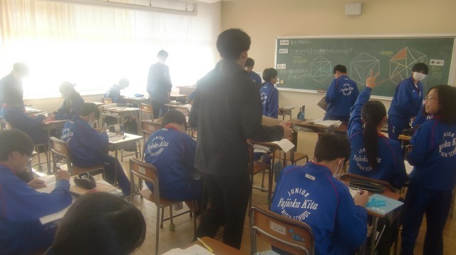 11/10 1年生数学の授業 公開日 2025/11/10 更新日 2025/11/10 できごと 数学は、図形の学習をしていました。3つの図形を移動させて敷き詰め模様をかくことができるか、対称移動や回転、反転などをさせながら楽しみながら考えていました。