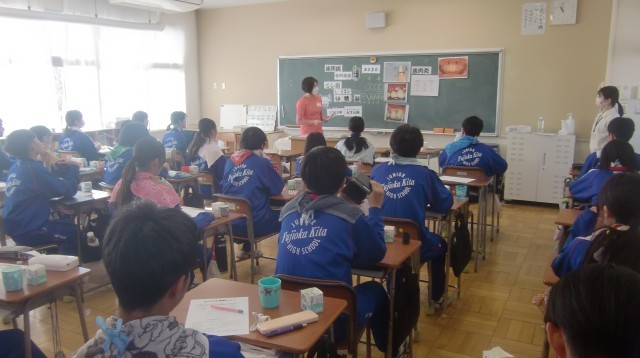 11/20 歯の出前講座 公開日 2025/11/20 更新日 2025/11/20 できごと 本日、2年生を対象に歯の出前講座を実施しました。テーマは「健康な歯をつくろう」特にむし歯、歯肉炎の予防についてです。自分の口の中を実際に観察して、口腔内の健康は自分で守ることの大切さを考えました。歯科衛生士、保健師の皆様に丁寧にご指導いただきました。ありがとうございました。