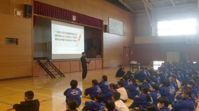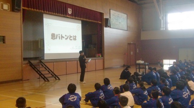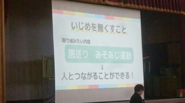 1日(月)にはそのスタートにあたり、体育館で人権集会を開催しました。生徒会より、ぽ☆ら☆り☆す(学校運営協議会)に参加して話し合った内容についての紹介と、今回の人権学習のテーマ「調和~恩送り・みそあじ~」についての説明がありました。また、学年委員会より「ハッピーハートフルツリー」、生活委員会より「ハイタッチあいさつ運動」、放送委員会より「人権ソング」、JRCユネスコ委員会より「赤い羽根募金」、保健委員会より「レッドリボン」について説明がありました。