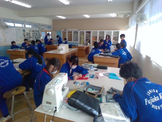 12/9 1年生家庭科の授業 公開日 2025/12/09 更新日 2025/12/09 できごと 1年生は「生活を豊かにするもの」の製作に取り組んでおり、先週はミシンボランティアのみなさんに学習支援をしていただいていました。完成した生徒も多くなってきました。あと少しで全員が出来上がります。